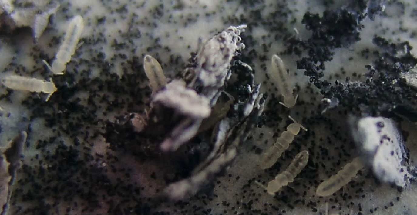 QuickTime video showing springtails (F. candida) feeding on S. coelicolor biomass.